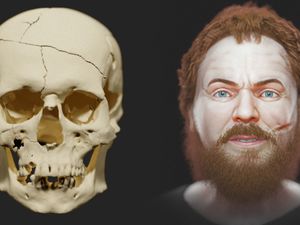 The face of a "vampire" whose remains were posthumously mutilated to prevent them rising from the dead can be seen for the first time in more than 400 years.