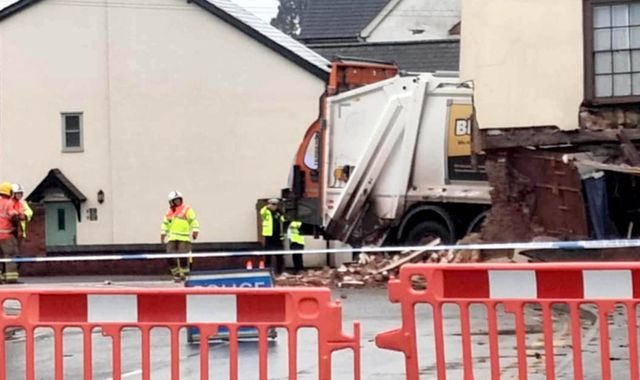 (c) Sky News 2025: Bin lorry crashes into building, leaving one dead and two injured